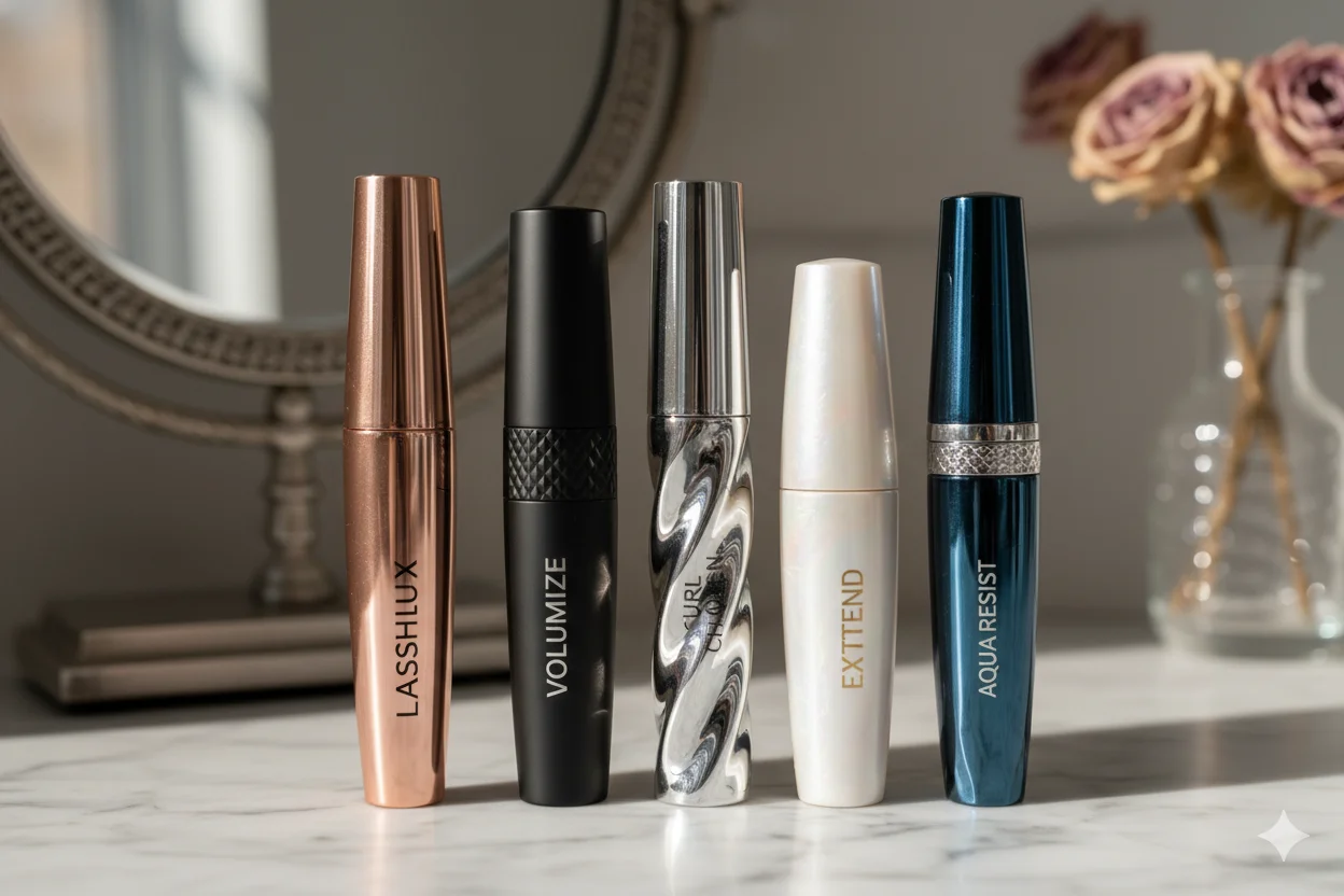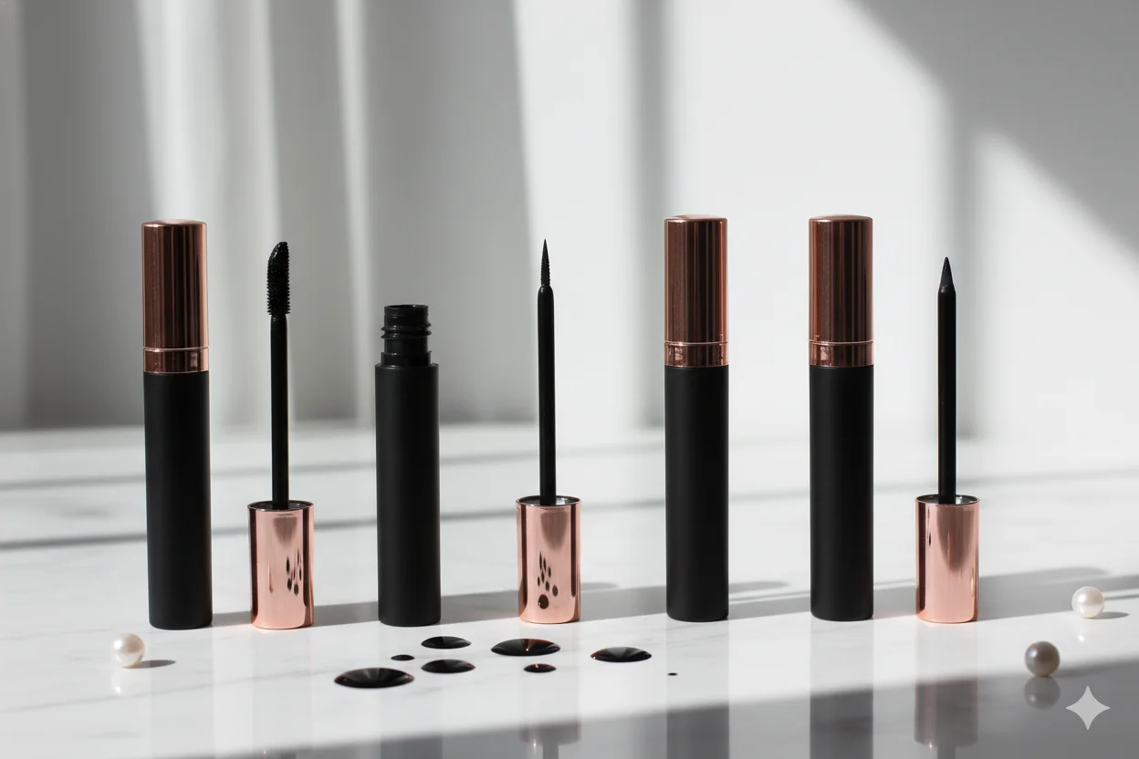 Lipstick, lip gloss, eyelash, eyeliner tubes and comprehensive cosmetic packaging